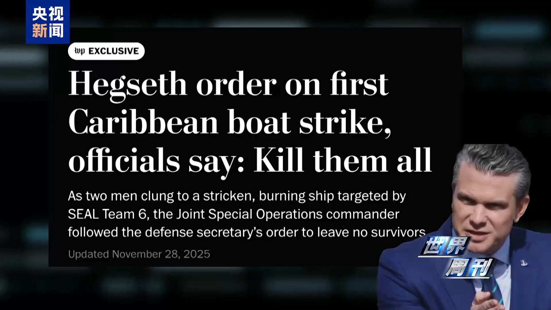 早在11月28日,《华盛顿邮报》就援引知情人士消息曝料,美军9月2日在加勒比海对一艘所谓“贩毒船”发射导弹打击后,继续对船上两名生还者实施打击,赫格塞思曾下令“不留活口”。