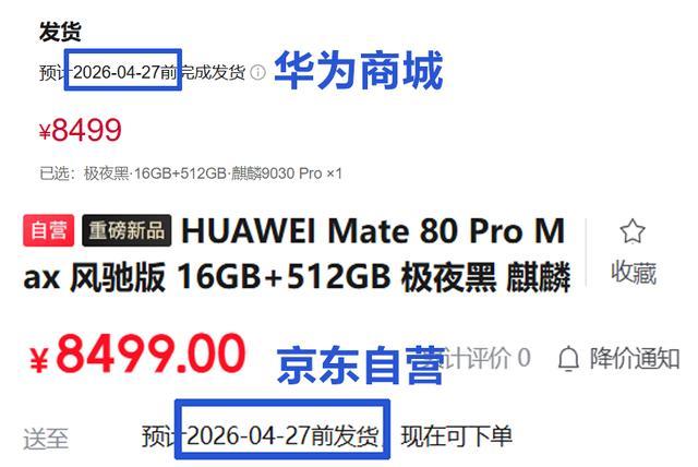 目前在华为商城和京东自营等线上平台,Mate 80 Pro Max风驰版的首批货源已经售罄,发货排到4月底。